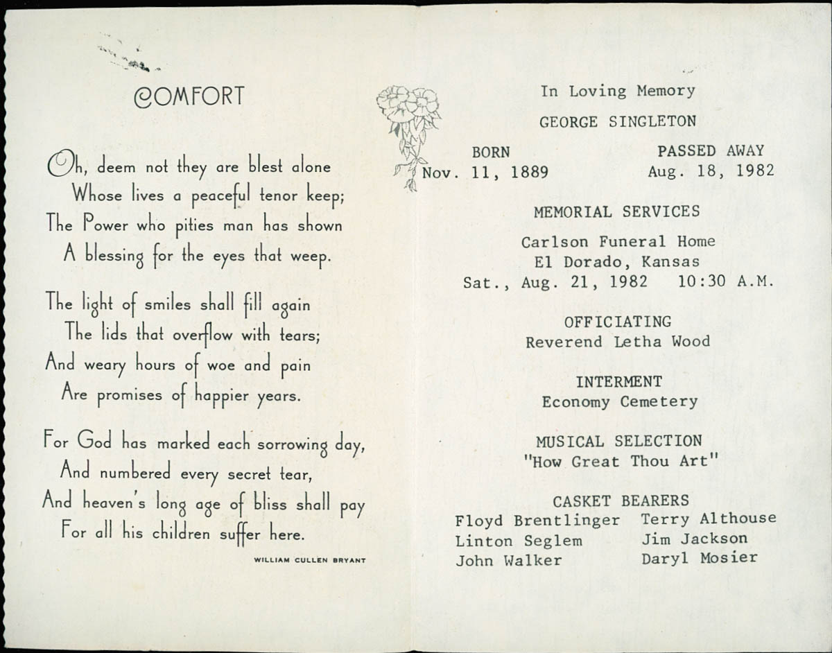 Carlson's Funeral Home, “Funeral Program for George Singleton,” MHGS Digital Collections, accessed April 18, 2026, https://mhgswichita.org/om/items/show/16850.