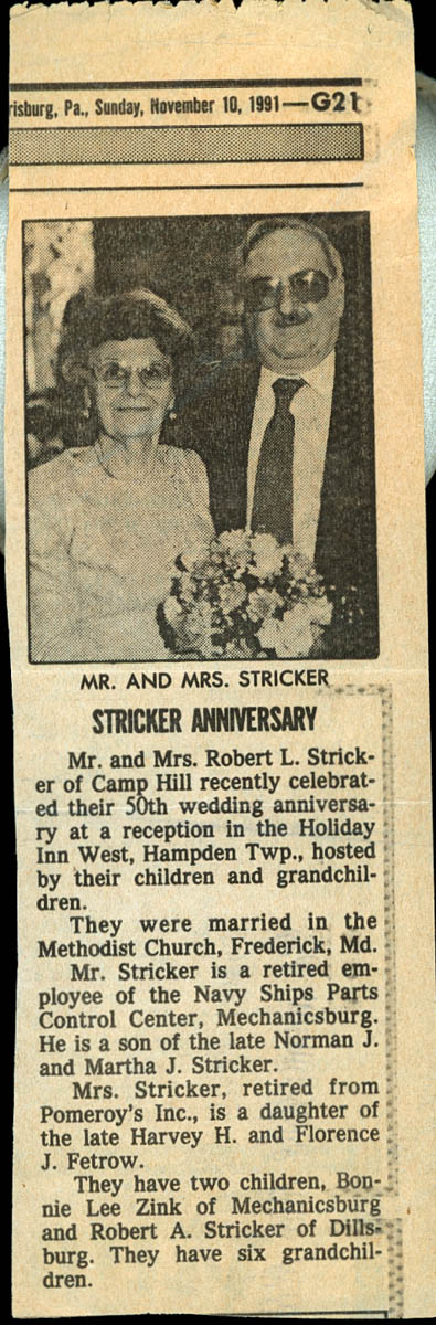 - 50th Wedding Anniversary Announcement for Mr and Mrs Robert Stricker