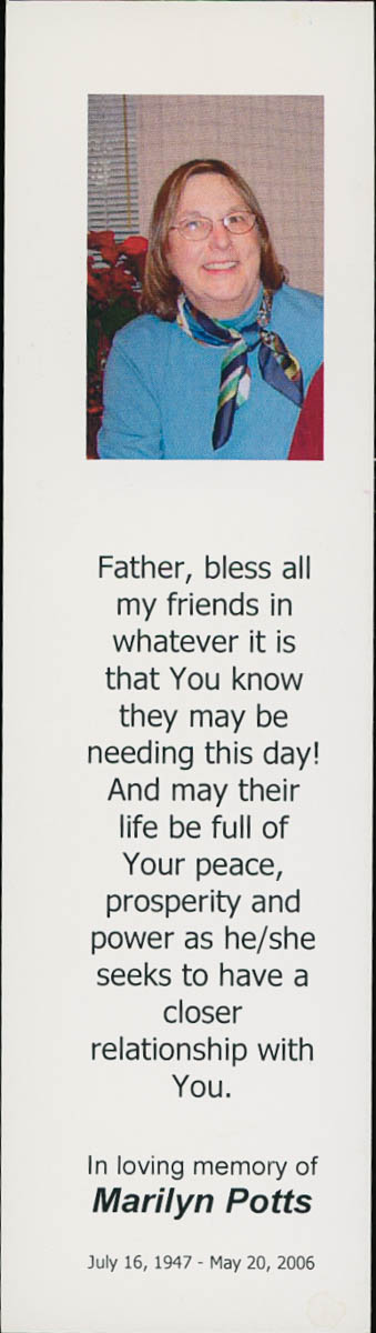 Headley Funeral Chapel, “Prayer Card for Marilyn Potts,” MHGS Digital Collections, accessed April 17, 2026, https://mhgswichita.org/om/items/show/16879.