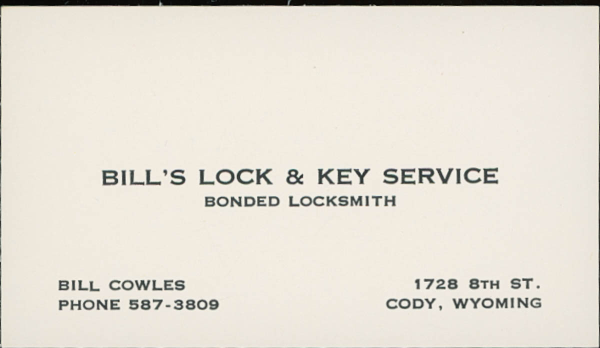 Bill Cowles, “Business Card for Bill's Lock & Key Service,” MHGS Digital Collections, accessed April 16, 2026, https://mhgswichita.org/om/items/show/17013.