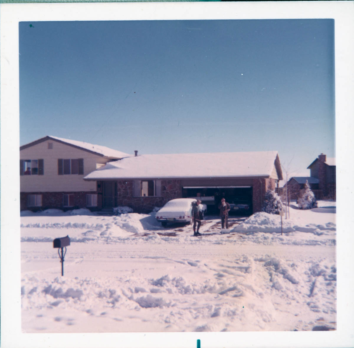- Photograph of people shoveling snow from a driveway.