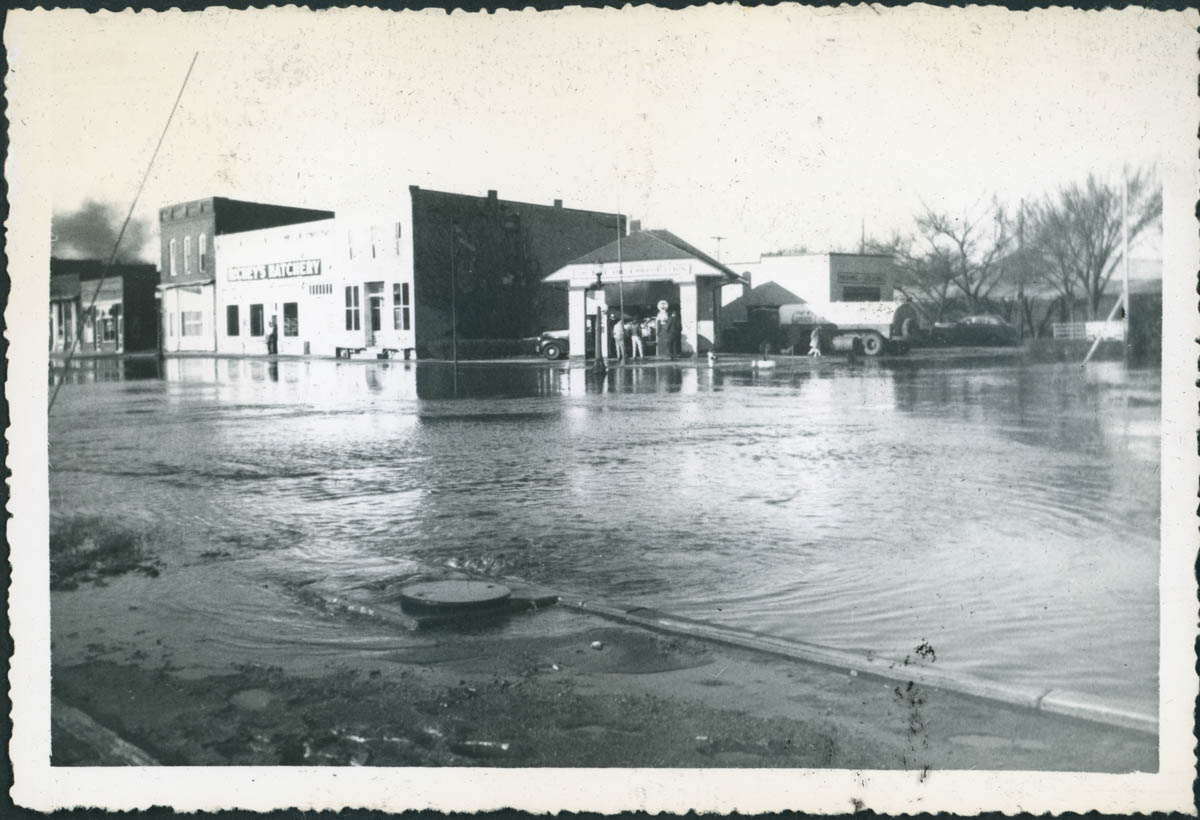- Snapshot of a flood in Halstead. Handwritten note says "Flood pictures 1944." This is an item in a scrapbook.