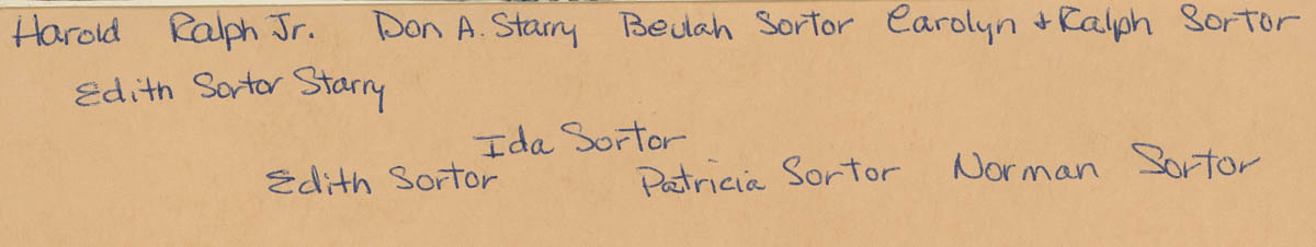 - Harold & Ralph Sortor, Don Starry, Beulah, Carolyn & Ralph Sortor, Edith Starry, Edith, Ida, Patricia & Norman Sortor