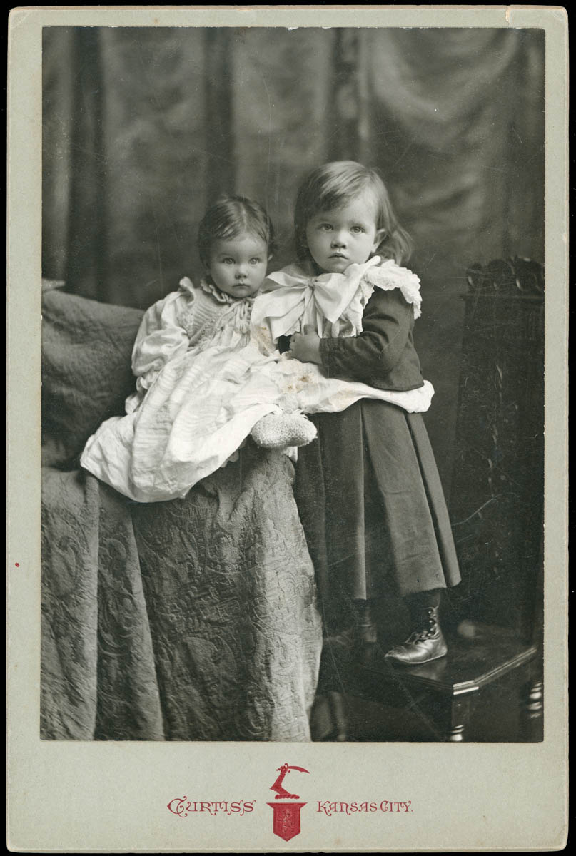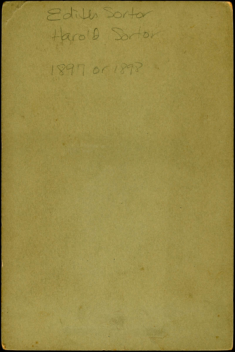 - Portrait of two small children. Handwritten label on back says "Edith Sortor, Harold Sortor 1897 or 1898"