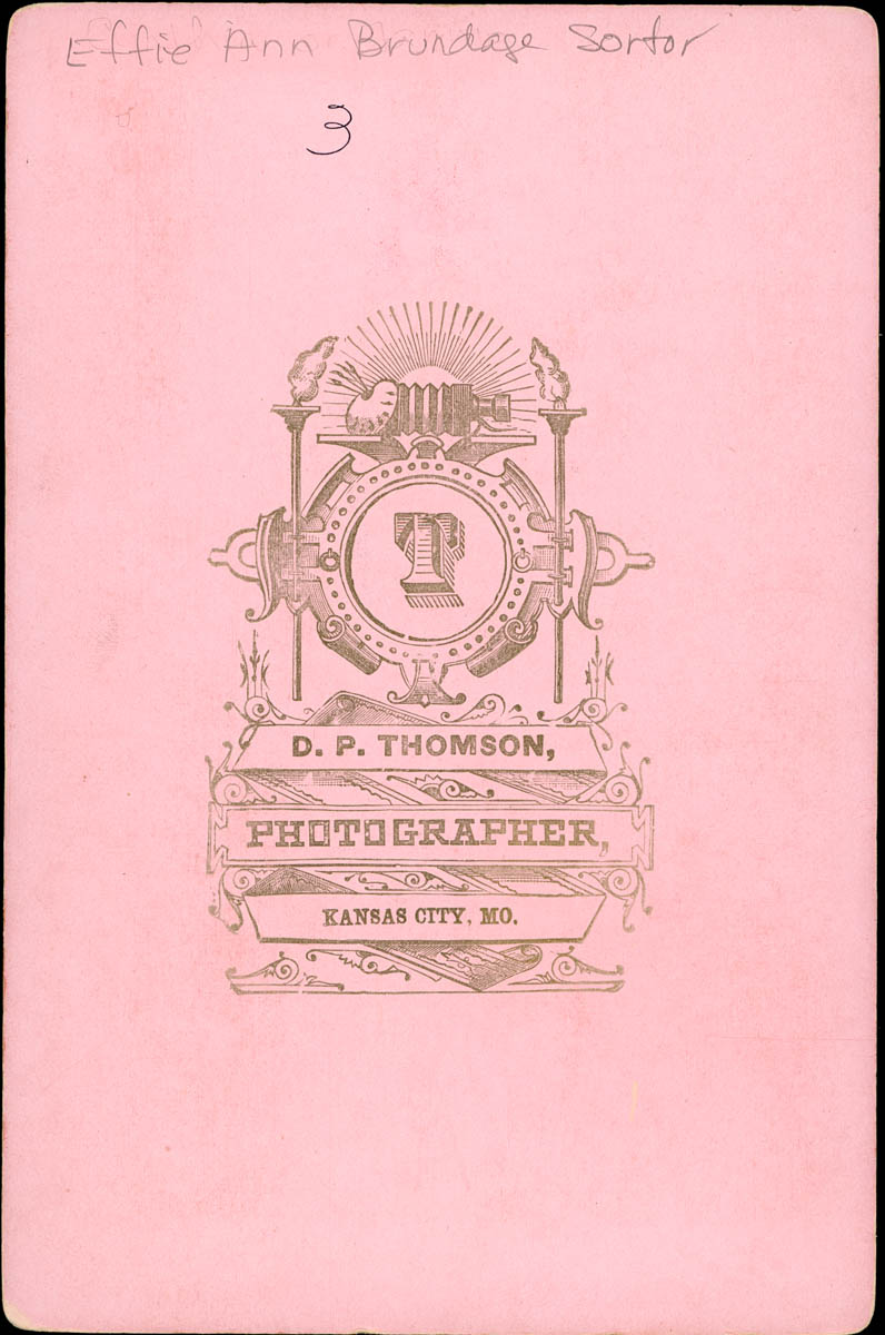 D. P. Thomson, Kansas City, Missouri, “Effie Sortor,” MHGS Digital Collections, accessed April 20, 2026, https://mhgswichita.org/om/items/show/18519.