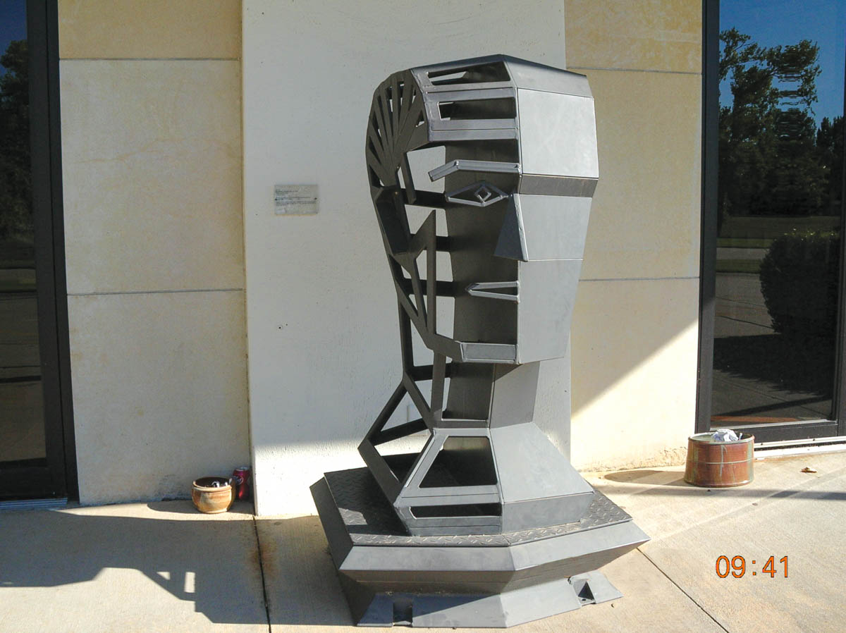 - Snapshot of a steel sculpture. This is a photograph from the book "Beautifying Wichita Through Sculpture."