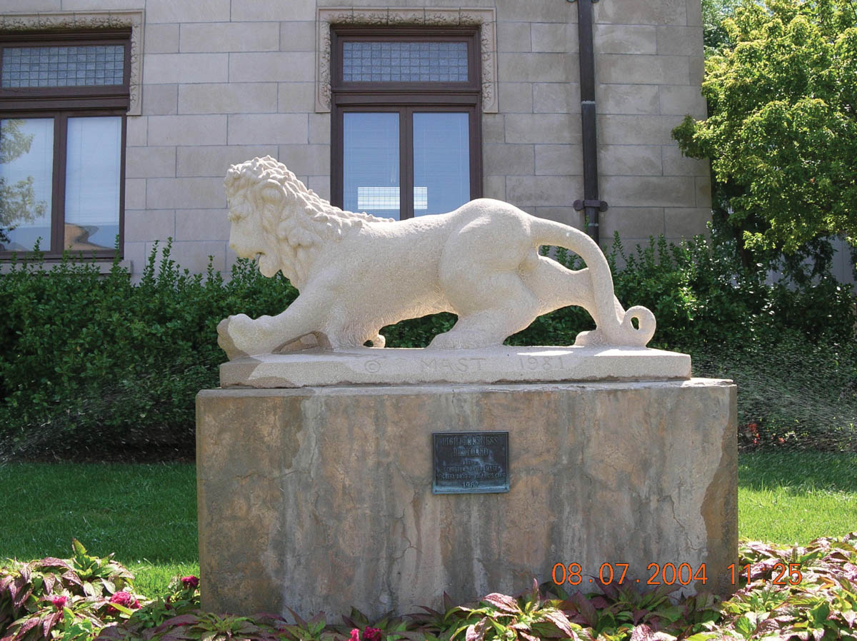 - Snapshot of a limestone lion sculpture. This is a photograph from the book "Beautifying Wichita Through Sculpture."