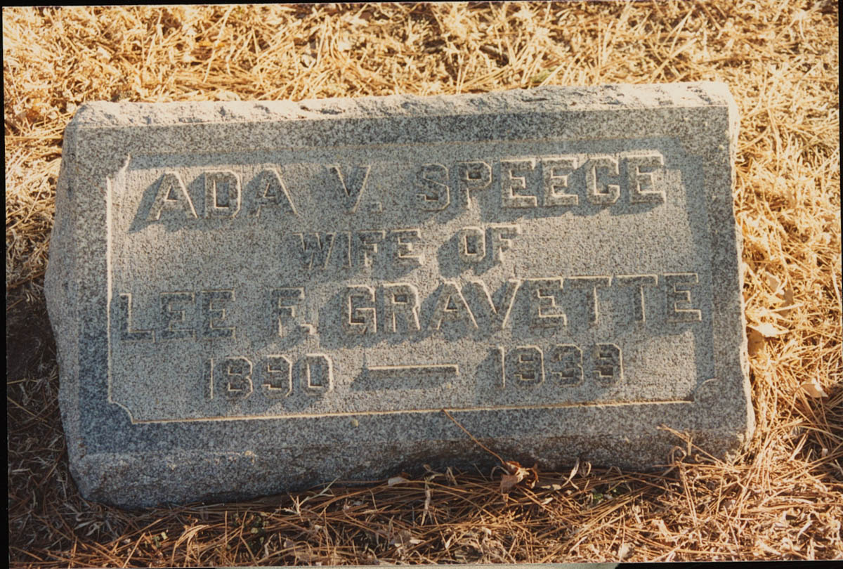 Unknown Photographer, “Cemetery Marker for Ada Speece Gravette,” MHGS Digital Collections, accessed February 2, 2026, https://mhgswichita.org/om/items/show/19154.