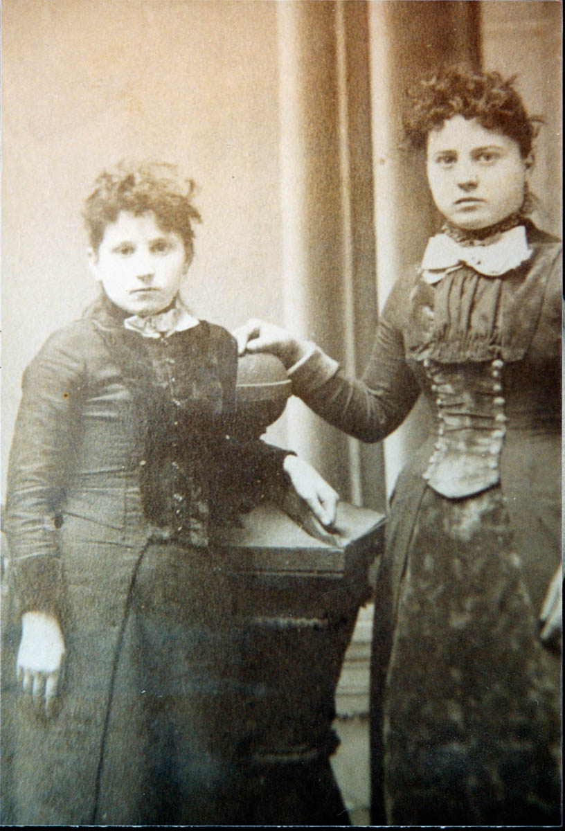 - Portrait of two young women. Typed label on back says "Lenitma & Linnie Hodge (Missouri)"