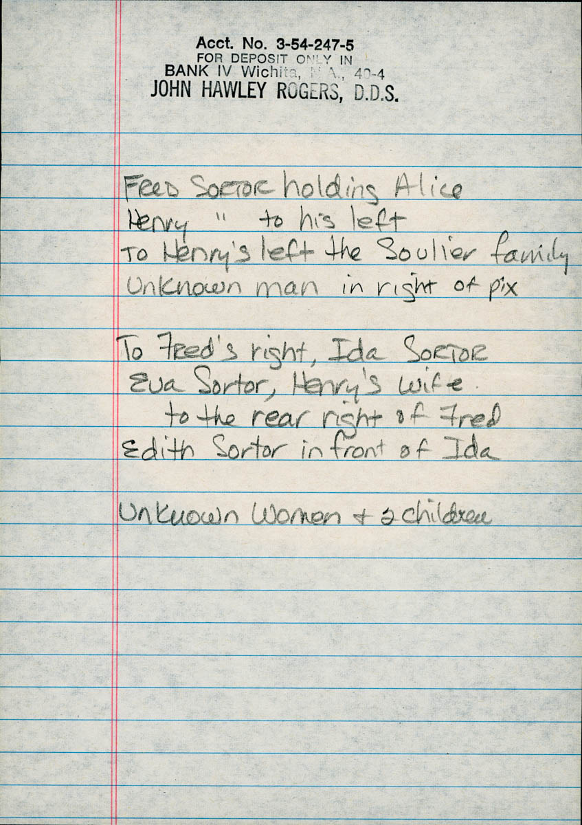 Unknown Photographer, “Sortor and Soulier Families,” MHGS Digital Collections, accessed April 19, 2026, https://mhgswichita.org/om/items/show/19217.