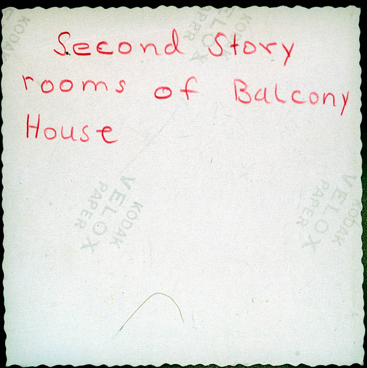 - Photograph of a Native American cliff dwelling. Handwritten note on back says "Second Story rooms of Balcony House."