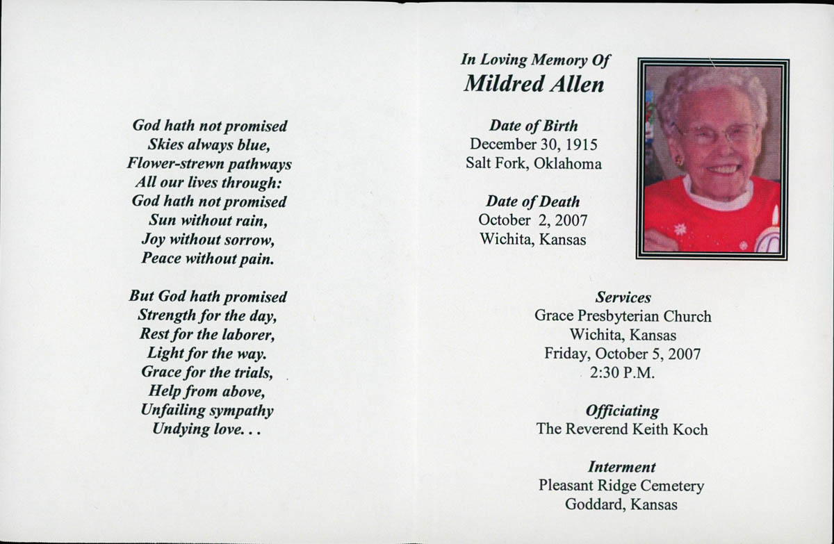 - Funeral Bulletin for Mildred Allen