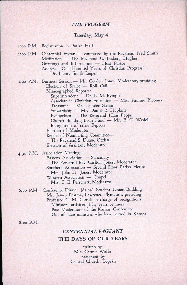 Plymouth Congregational Church, “Program for the Ninety-Ninth Annual Meeting of the Congregational Christian Conference of Kansas,” MHGS Digital Collections, accessed April 15, 2026, https://mhgswichita.org/om/items/show/20204.