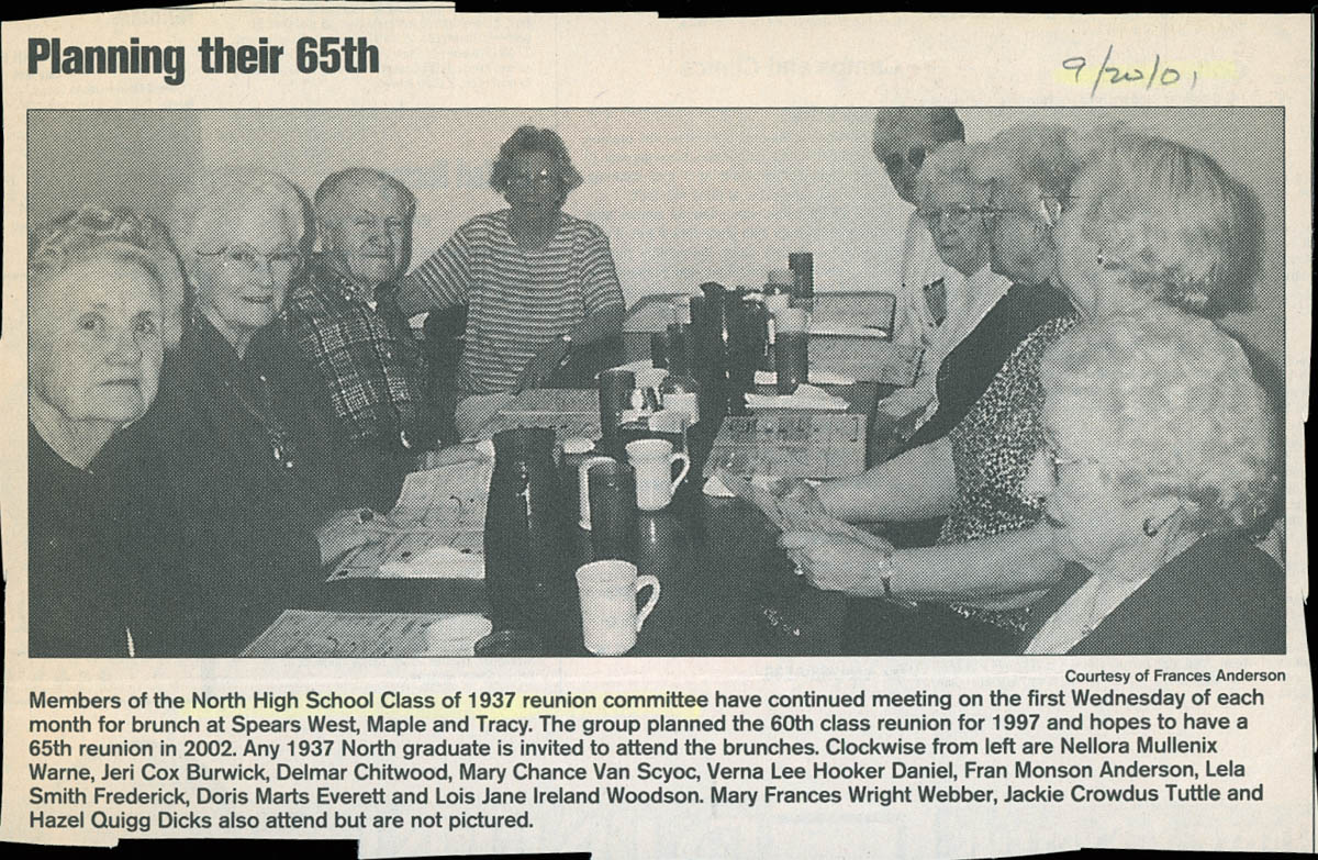 - Newspaper Article About Wichita East High Class of 1937 Reunion Committee