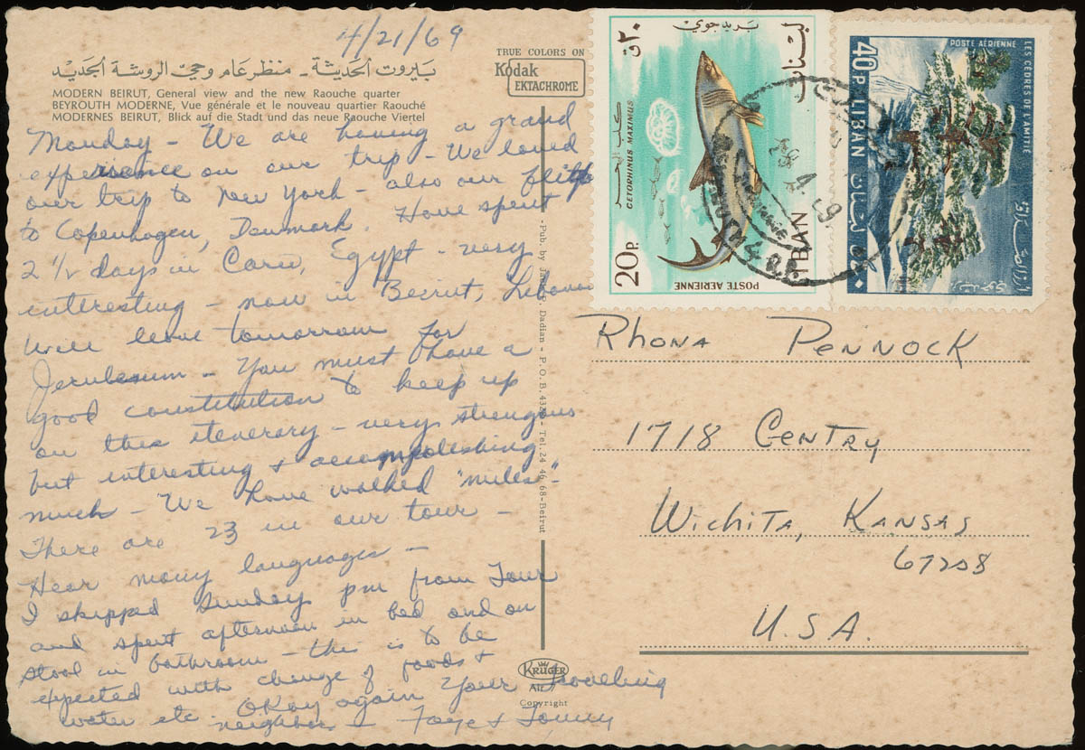 Unknown Photographer, “Postcard from Beirut,” MHGS Digital Collections, accessed April 30, 2026, https://mhgswichita.org/om/items/show/20230.