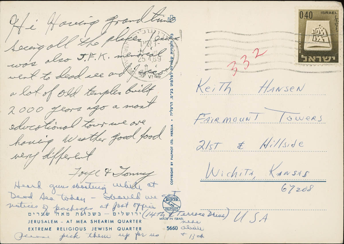 Unknown Photographer, “Postcard from Jerusalem,” MHGS Digital Collections, accessed April 30, 2026, https://mhgswichita.org/om/items/show/20236.