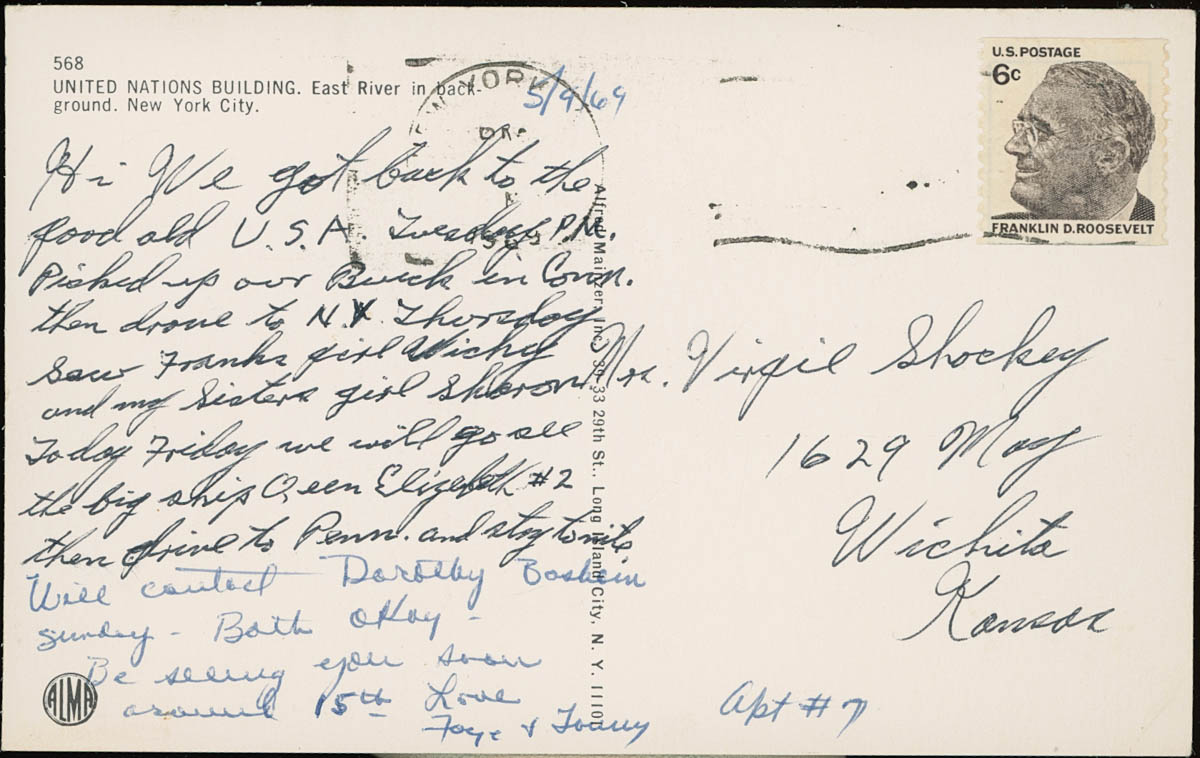 Unknown Photographer, “Postcard from the United Nations,” MHGS Digital Collections, accessed April 17, 2026, https://mhgswichita.org/om/items/show/20243.
