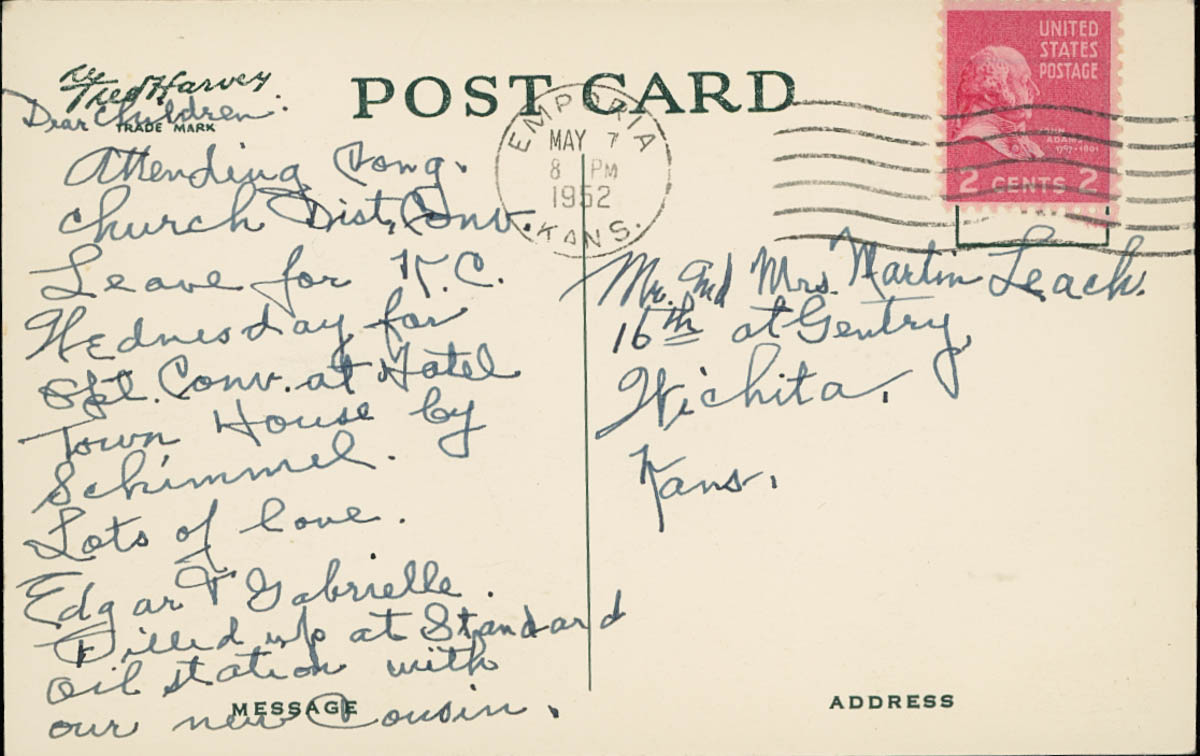Unknown Creator, “Postcard from Emporia,” MHGS Digital Collections, accessed April 19, 2026, https://mhgswichita.org/om/items/show/20319.