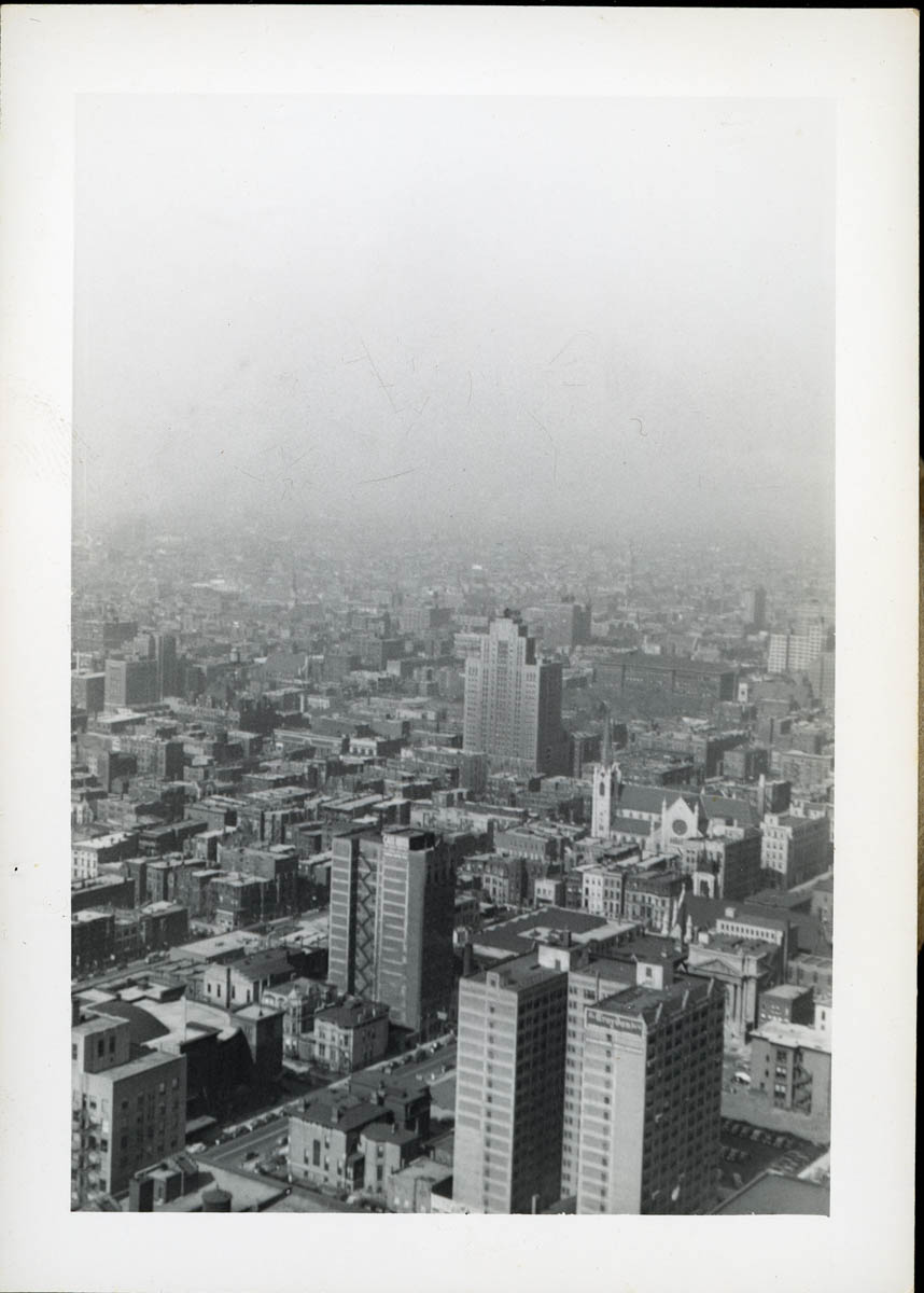 - Snapshot of a city from above. Handwritten label on envelope says "Chicago Trip 1942 I went on to Ky to Aunt Lizzie"