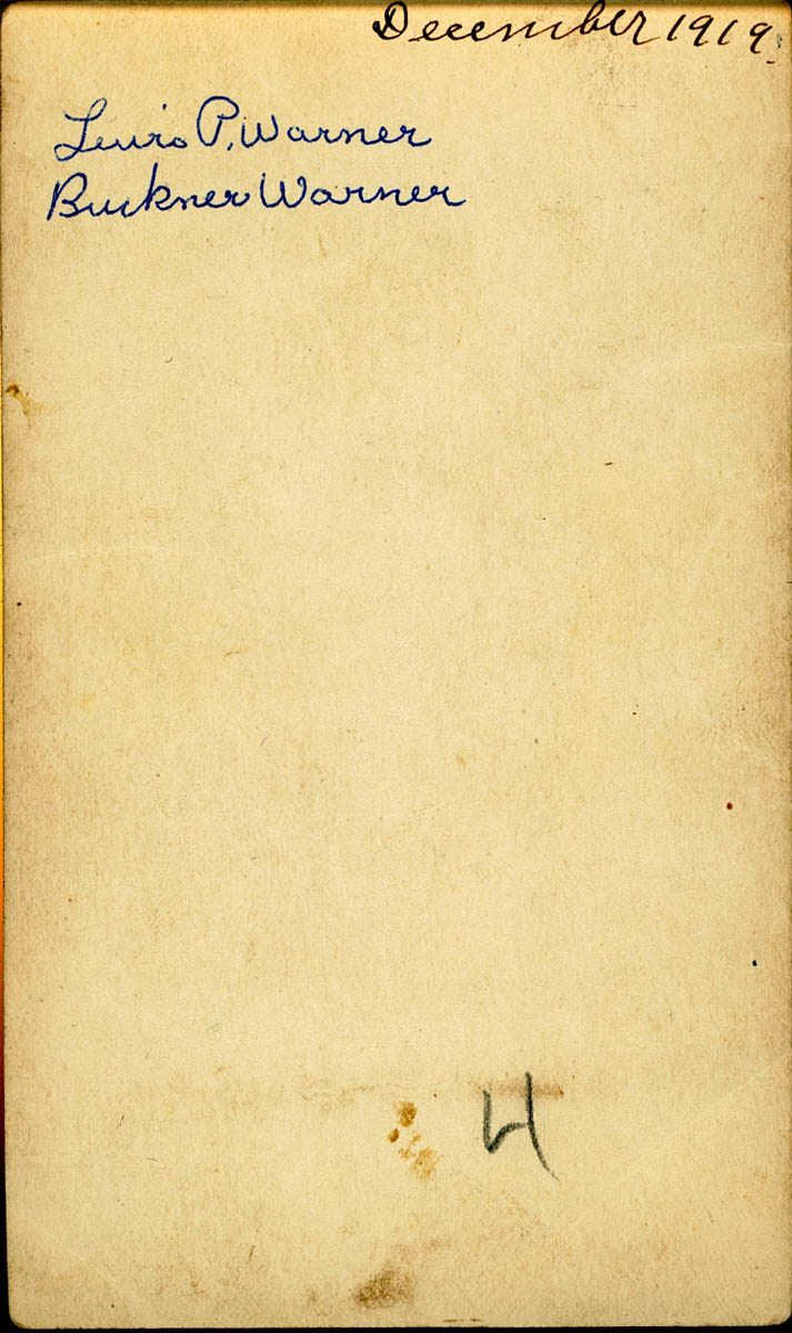 Handwritten label on back says "December 1919. Lewis P Warner, Buckner Warner" - Date