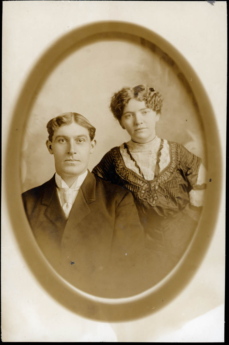 - Portrait of a man and woman. Handwritten label says "Henry C & Katie Fry." This is an item in a photo album.