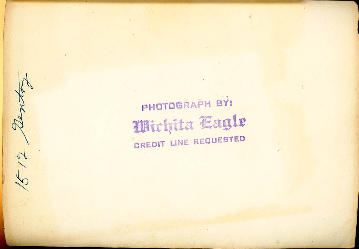 Stamped label on back says "Photograph by Wichita Eagle Credit Line Requested" and handwritten label on back says "1512 Gentry" - Creator