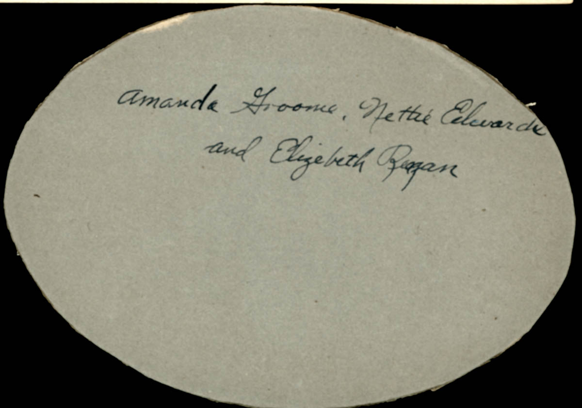 Handwritten label on back says "Amanda Groome, Nettie Edwards and Elizabeth Reagan" - Creator
