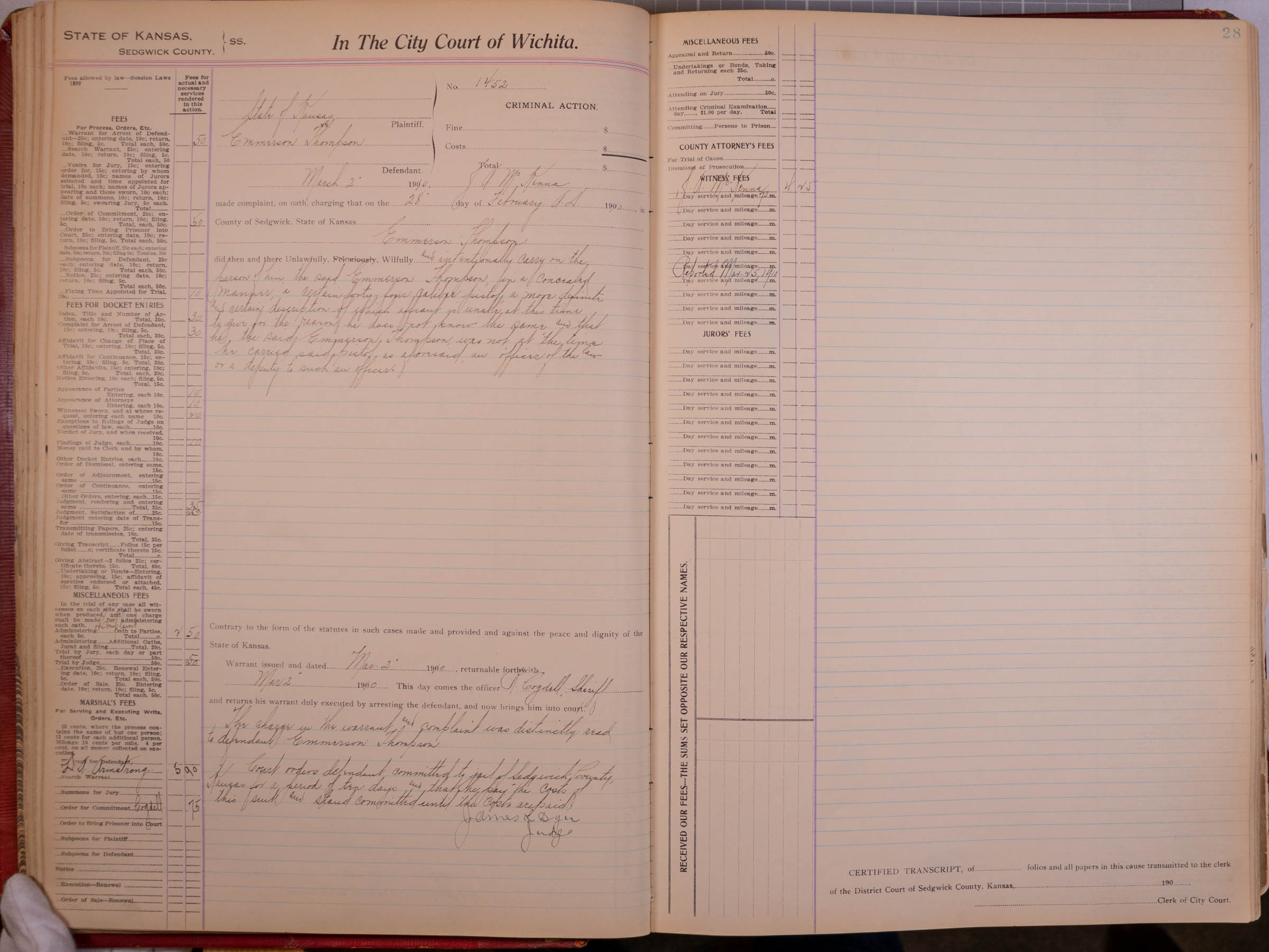 City Court of Wichita Case #1452: Emmerson Thompson
