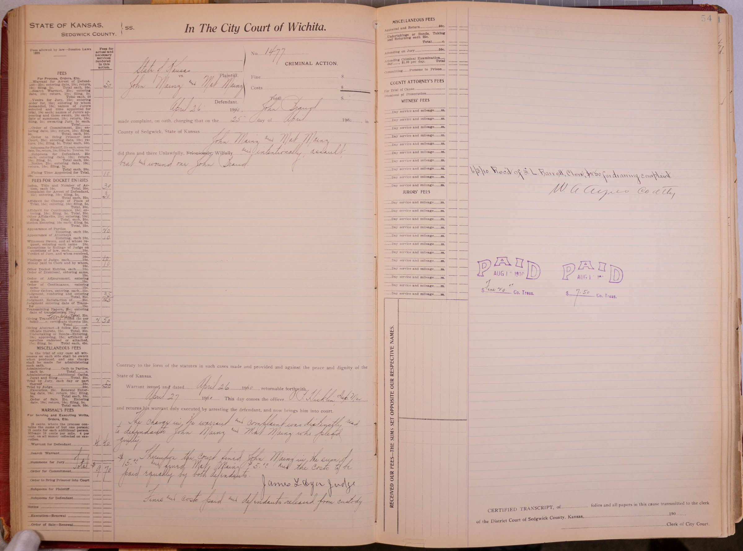 City Court of Wichita Case #1477: John Mainz & Mat Mainz