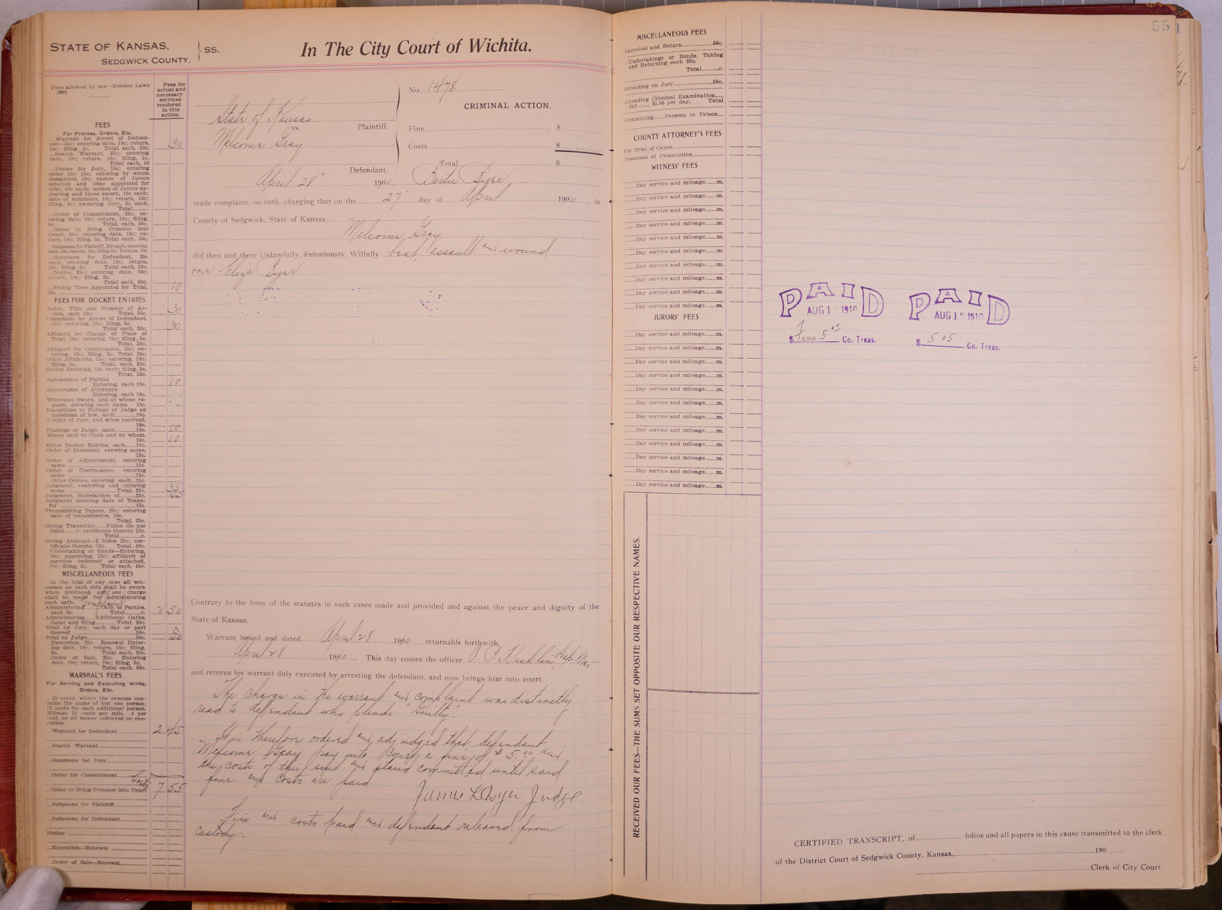 - Original "Docket ledger, 1910 - 1911, City Court of Wichita" held by Wichita-Sedgwick County Historical Museum