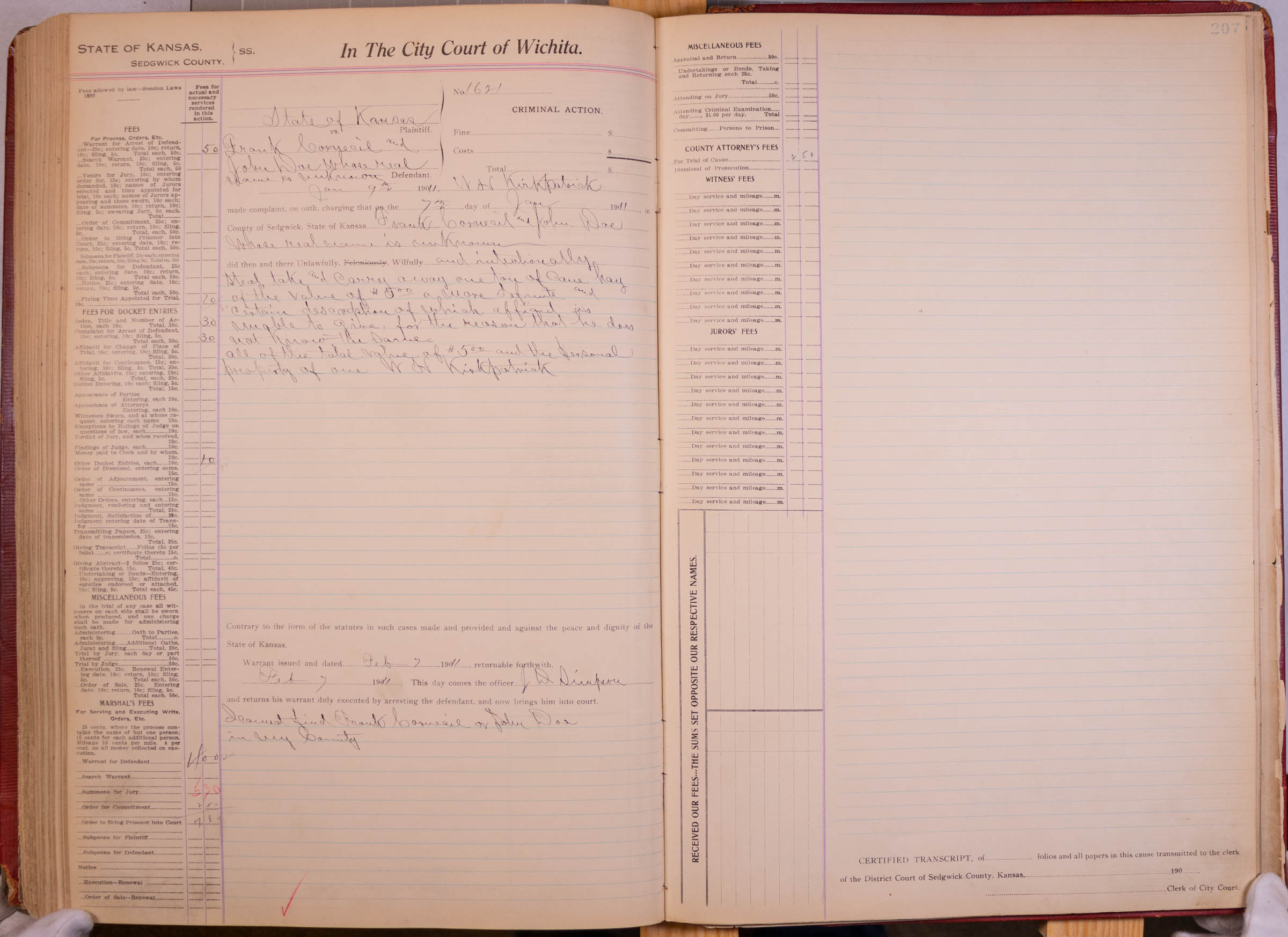 City Court of Wichita Case #1621: Frank Cormecil & John Doe