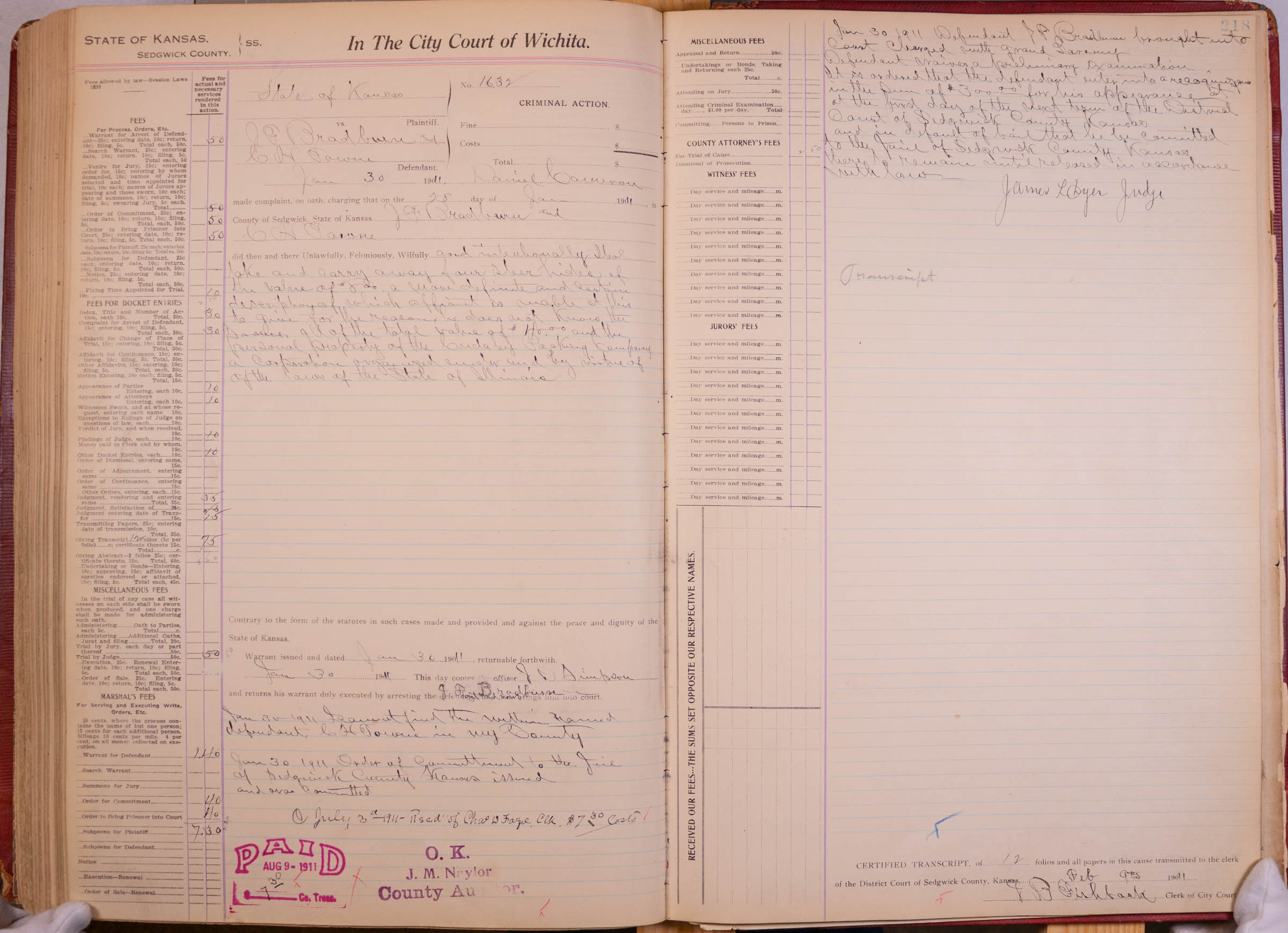 - Original "Docket ledger, 1910 - 1911, City Court of Wichita" held by Wichita-Sedgwick County Historical Museum
