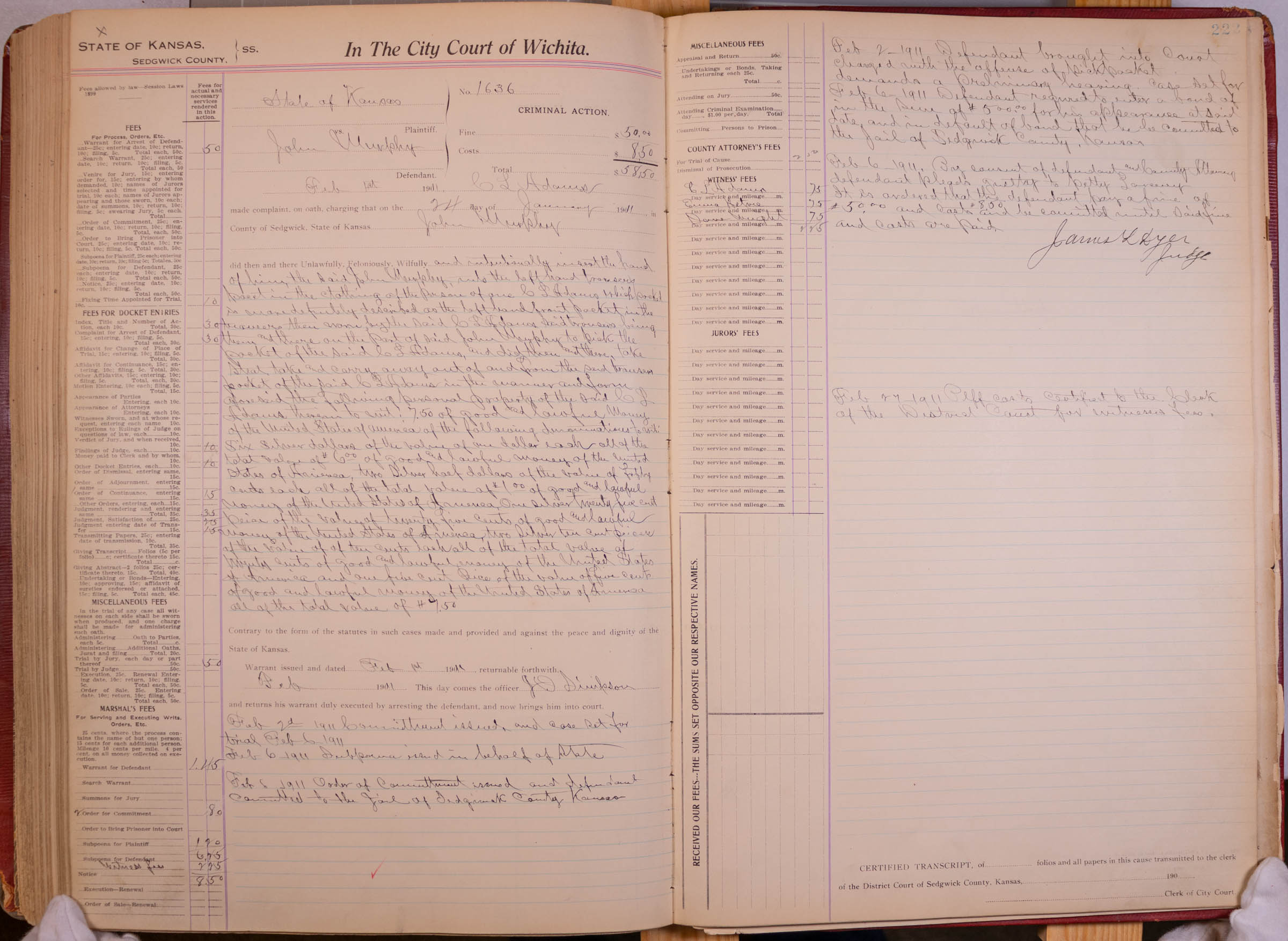 - Original "Docket ledger, 1910 - 1911, City Court of Wichita" held by Wichita-Sedgwick County Historical Museum