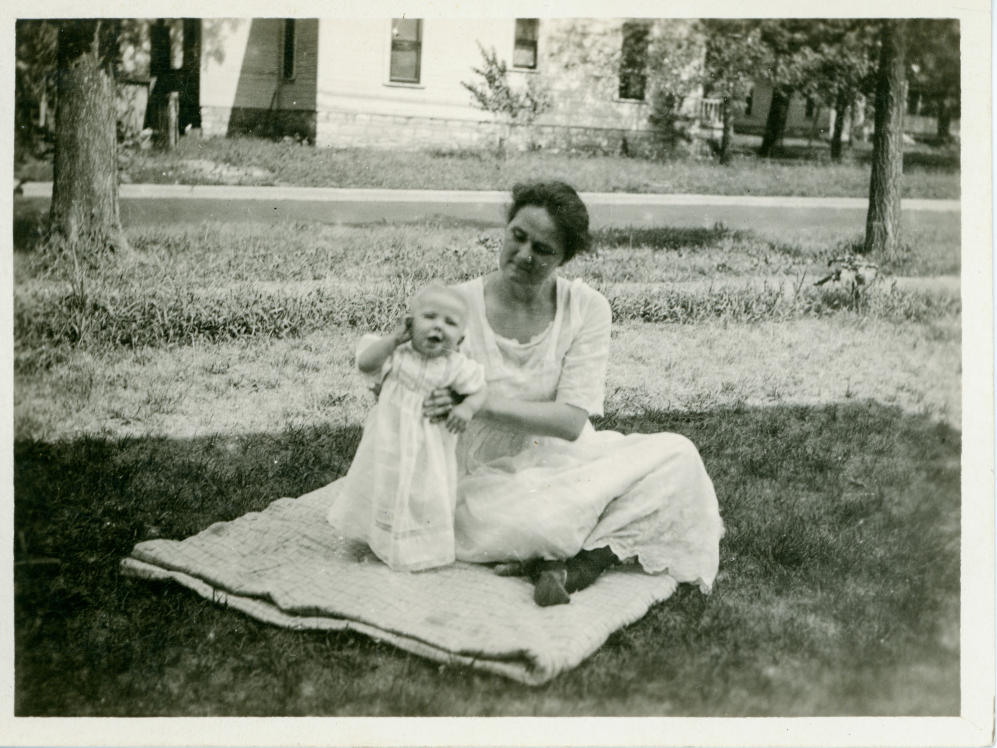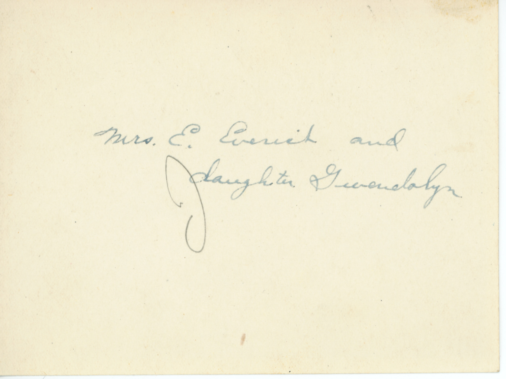 - Snapshot of Mrs. Elmer Everist and her daughter Gwendolyn. Handwritten on back "Mrs. E. Everist and daughter Gwendolyn"