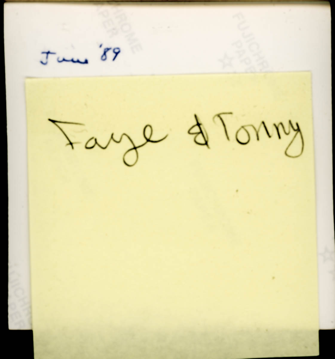 Handwritten labels on back say "June '89" and "Faye & Tonny" - Date