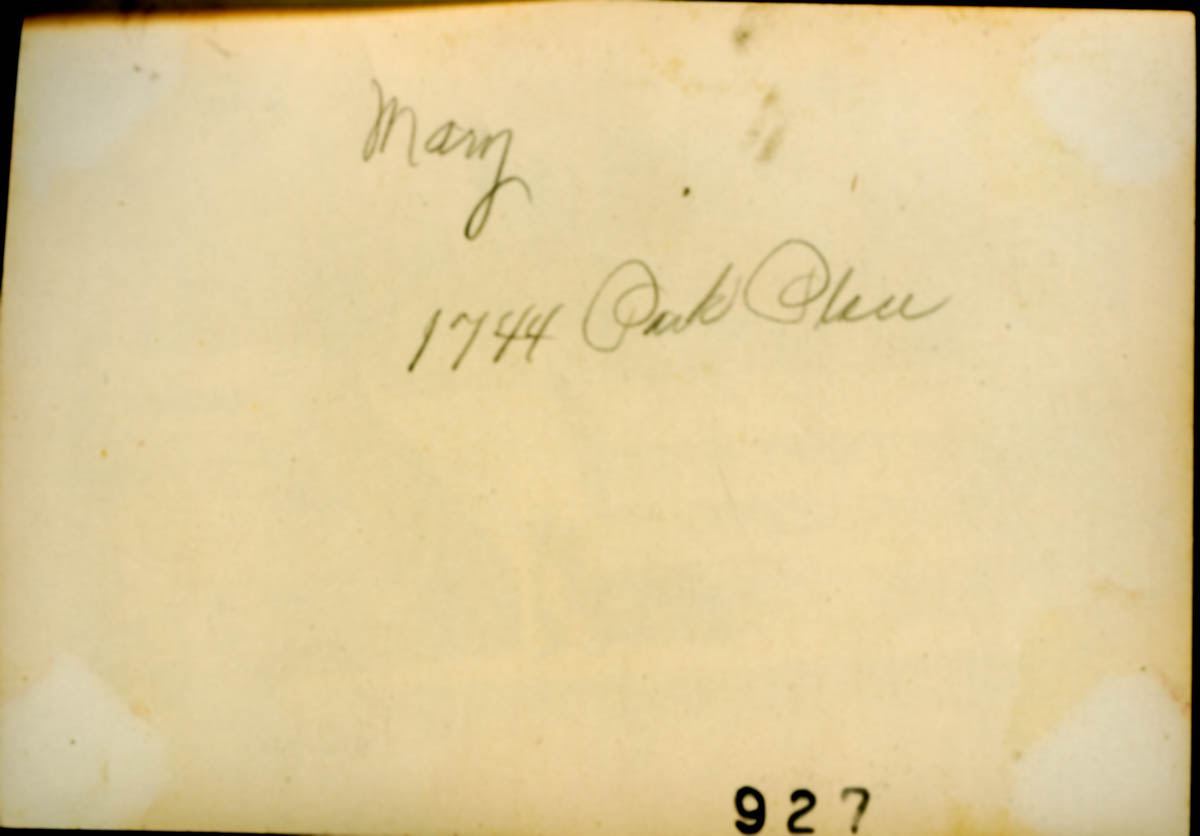 Handwritten label on back says "Mary 1744 Park Place" - Creator