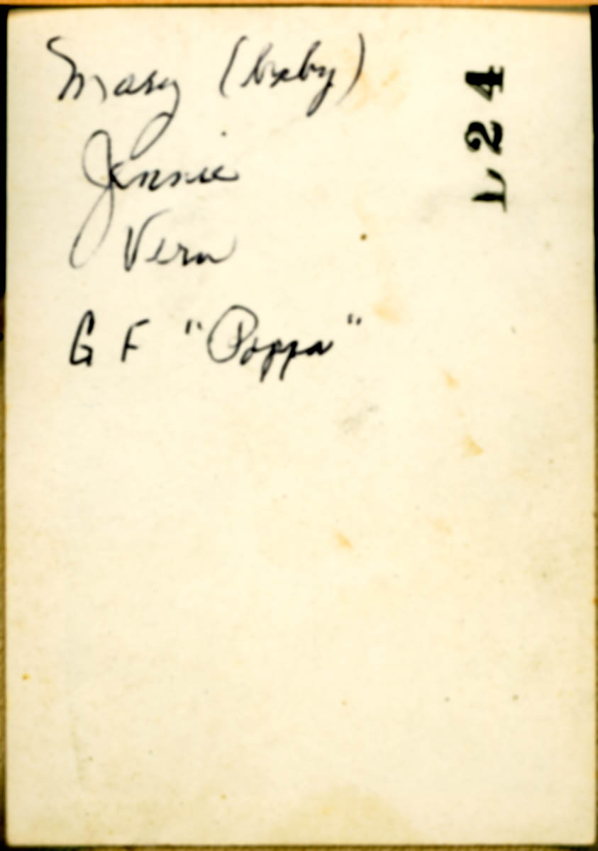 Handwritten label on back says "Mary (baby) Jennie Vern G F "Poppa" " - Creator
