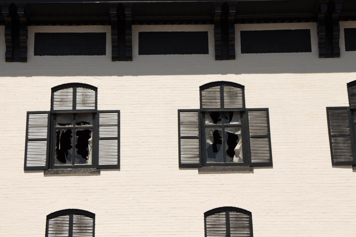 - Photograph of an office building after a fire started during remodeling on August 21, 2019