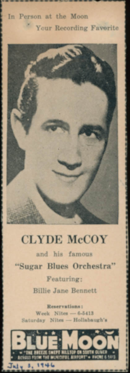 Blue Moon Club, “Ad for Clyde McCoy at the Blue Moon,” MHGS Digital Collections, accessed April 16, 2026, https://mhgswichita.org/om/items/show/7759.