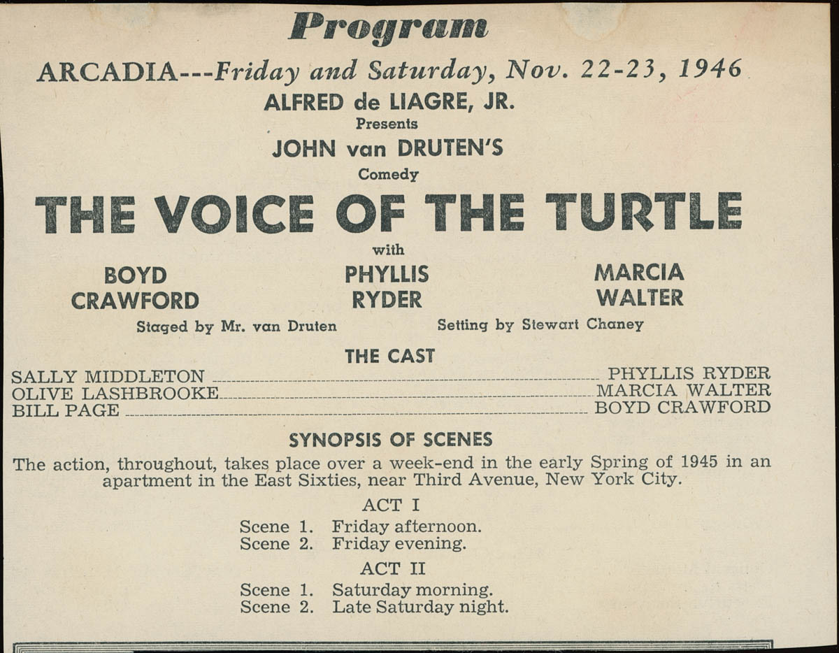 - Program from Performance of The Voice of the Turtle at the Arcadia Theater at the Wichita Forum