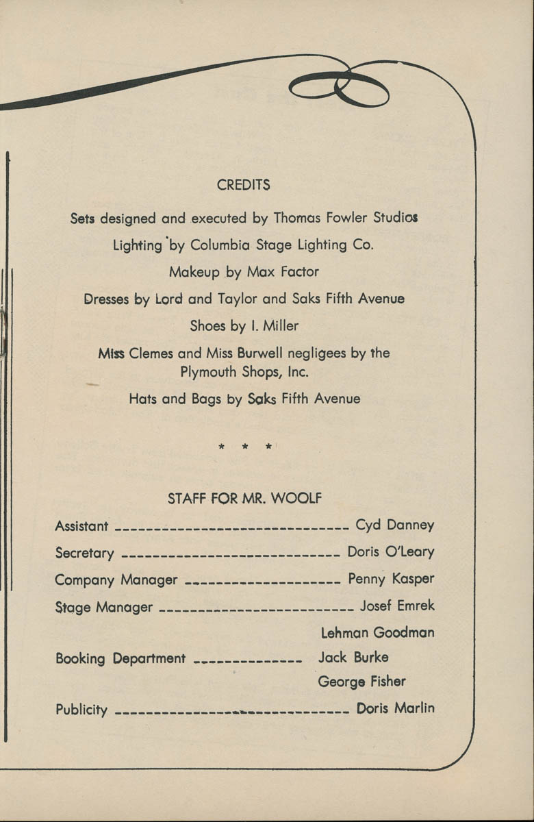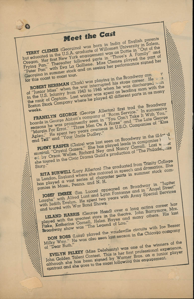- Clipping from a printed theater program. This is an item in a scrapbook.