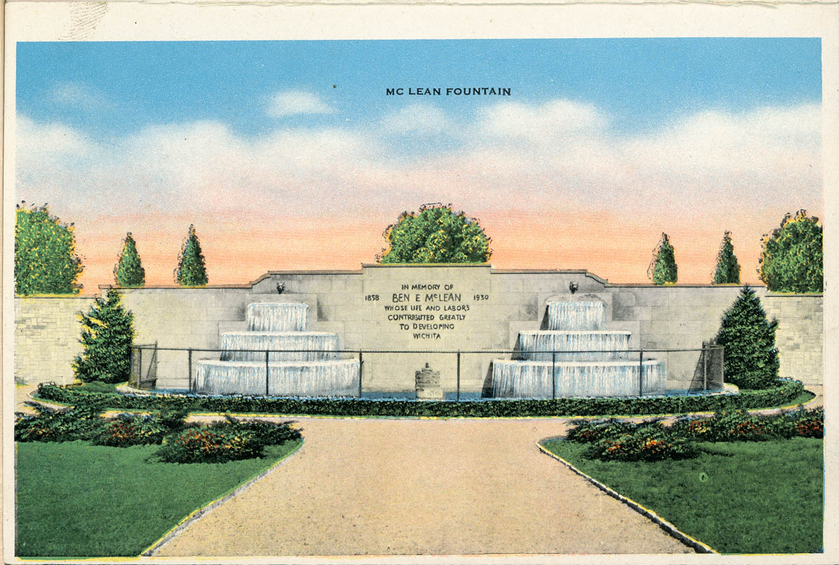 M. S. News Co., Wichita, Kansas, “Wichita Kansas Souvenir Postcard – McLean Fountain,” MHGS Digital Collections, accessed April 17, 2026, https://mhgswichita.org/om/items/show/814.