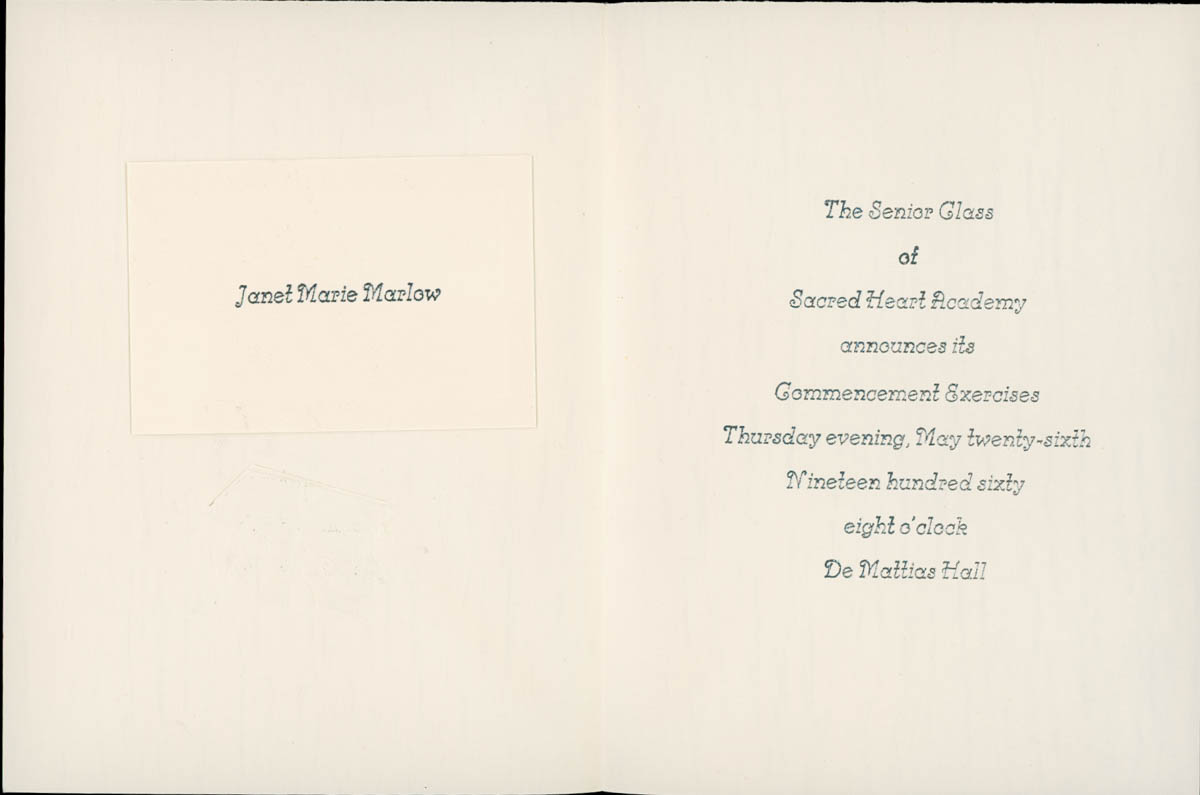 Sacred Heart Academy, “College Graduation Announcement for Janet Marlow,” MHGS Digital Collections, accessed April 30, 2026, https://mhgswichita.org/om/items/show/8492.