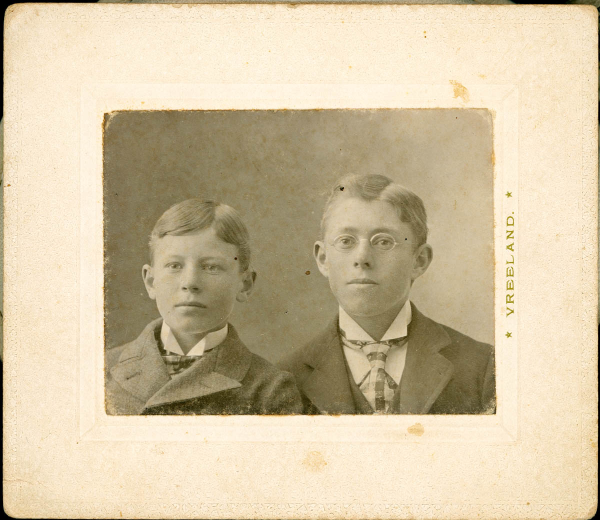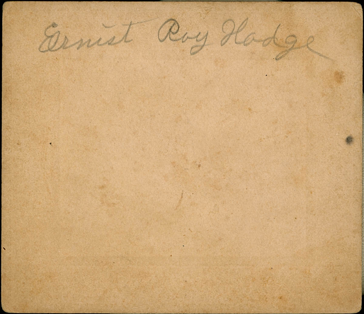 - Photograph of two young men. Handwritten label on back says "Ernest Roy Hodge"