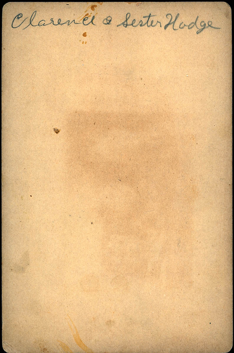 - Portrait of a baby and a small boy. Handwritten label on back says "Clarence & Sester Hodge"