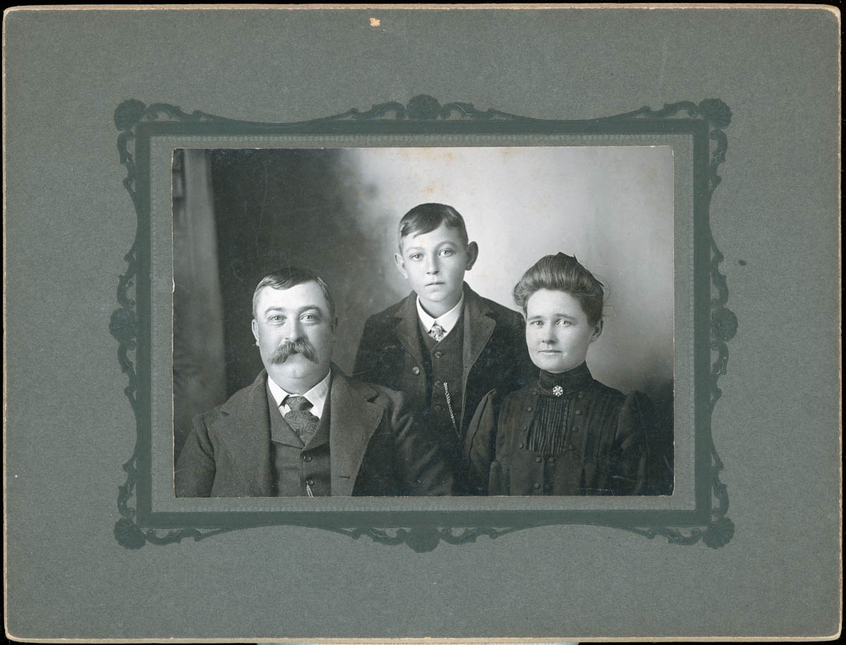 - Portrait of two adults and a boy.