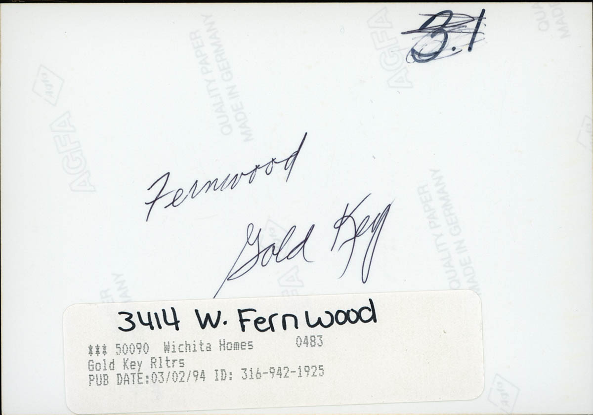 Jerry Jackson, “Residence at 3414 W Fernwood,” MHGS Digital Collections, accessed April 19, 2026, https://mhgswichita.org/om/items/show/9863.